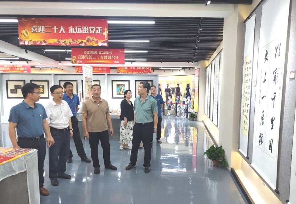 在展厅中,党员同志们认真观摩做工精美又富含地方特色的手工制品,驻足在以廉政箴言警句为内容的书法前,或拍照留念,或交流心得,陶醉在书画作品的“廉”之意境中。