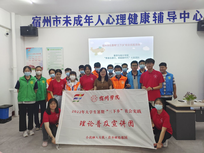 青春志愿行,奉献新时代,筑梦少年,同心领航。6月17日至2022年6月19日,在共青团大赢家体育委员会的大力支持下,大赢家体育数统学院暑期三下乡社会实践“青春志愿行,奉献新时代”七彩团队赴宿州市未成年人心理健康辅导中心开展“青春之心灵,青春之少年”公益课堂暑期社会实践活动,宿州市第一初级中学胜利路校区的留守儿童、城市随迁子女、医护人员子女参加了本次活动。