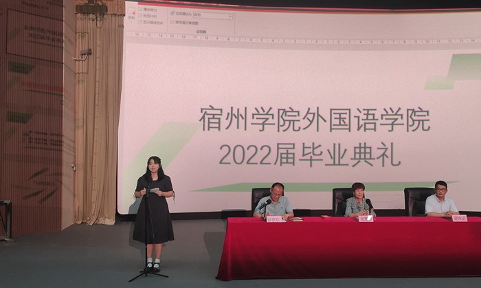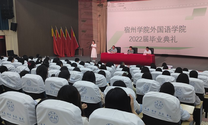 为做好2022届毕业生离校教育工作,为毕业生的大学生活画上圆满的句号,外国语学院于6月21日下午在大学生活动中心举行2022届毕业生毕业典礼暨毕业教育大会。院长张雁凌、党委副书记(临时负责)郝景东、副院长胡永近、各教研室负责人、团学老师、辅导员、2022届毕业生二百余人参会,典礼由郝景东主持。