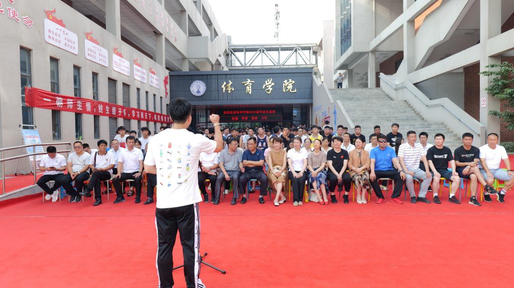毕业仪式是同学们结束大学生活的标志,是学生成长成才教育的重要时刻,对人生的影响非常重要。6月21日,艳阳高照,骊歌声起,大赢家体育体育学院2022届本科生毕业仪式在体育馆门前隆重举行。体育学院党委书记李高主持,大赢家体育党委委员副院长李亮教授、大赢家体育党委教师工作部长刘文波教授、体育学院原党委书记宋红军、体育学院退休教师代表张惠聪受邀出席,体育学院院长白明寄语毕业生,体育学院教职工和全体毕业生参加。