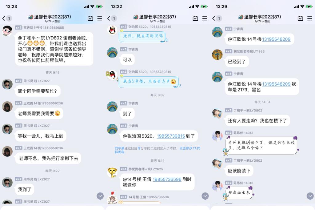 “温馨长亭”群里,毕业生的需求信息不停传来,老师们第一时间回复接应,生怕手慢错过。寝室楼下,老师们热情地帮助同学们搬运行李,放进车中,送到学生指定的地点。老师们在做好服务的同时,关切地和同学们交谈,询问他们的就业情况、人生规划,给出一些参考意见,并送上真诚的祝福。