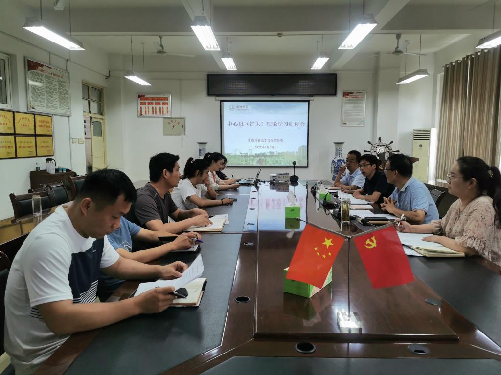 6月30日上午,生工学院在学院会议室召开党委理论学习中心组(扩大)学习研讨会,学院党委成员、支部书记、科级干部参加会议。会议由党委书记赵亮主持。