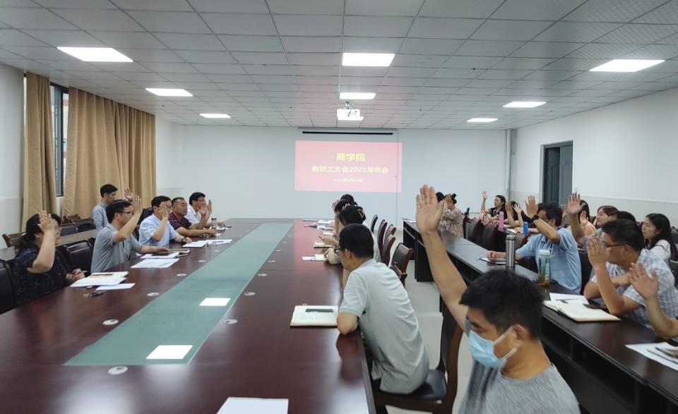 6月30日下午,商学院教职工大会2021年年会在实训楼B513会议室举行,全体教职工参加了会议,会议由商学院党委书记肖良主持。