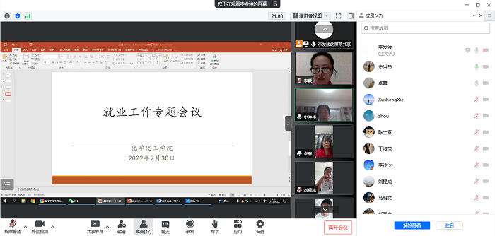 为进一步紧抓暑期毕业生求职关键期,全力促进毕业生顺利就业。7月30日,化学化工学院召开线上就业工作推进会。党委副书记(临时负责)史洪伟主持会议,全体教职工参加会议。