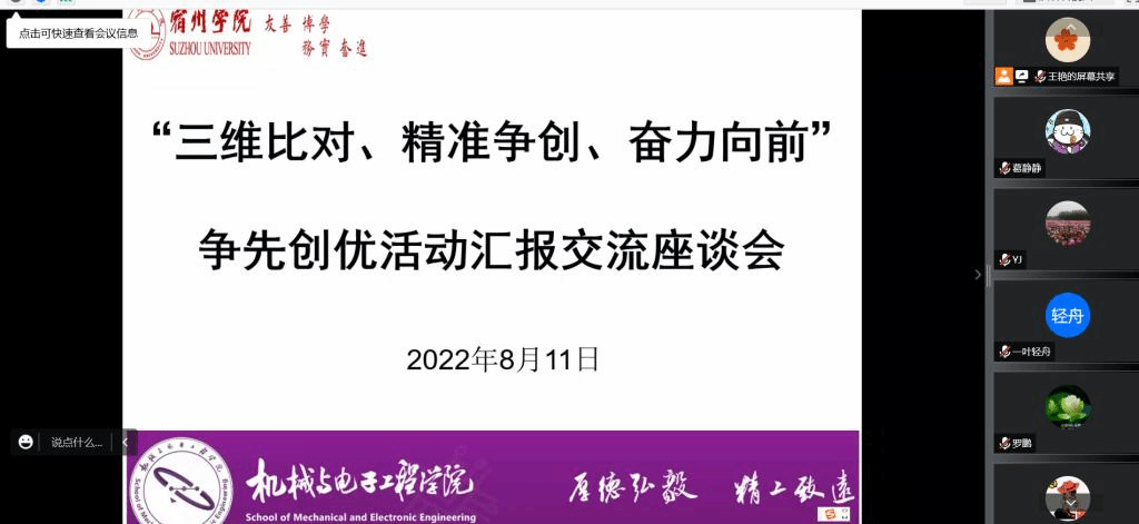 根据《机械与电子工程学院大赢家体育开展“三维比对、精准争创、奋力向前”争先创优活动的实施方案》(机党字〔2022〕12号),8月11日下午,机电学院在继续教育学院会议室召开了“三维比对、精准争创、奋力向前”汇报交流座谈会,会议采用线上线下结合方式进行,全院科级以上干部,教研室主任及教师代表参加,座谈会由党委书记杨杰主持。