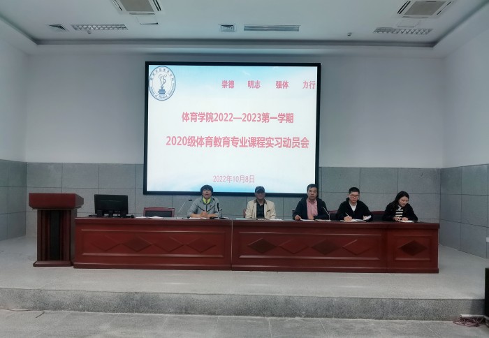 为贯彻落实教育部对培养应用型人才的要求,进一步做好专业教学实践工作,推进体育学院课程实习工作的顺利开展。体育学院于10月8日下午,在体育馆B112报告厅召开2020级体育教育专业课程实习动员大会。体育学院党委副书记、院长白明,党委副书记王德玉,副院长陈芳芳,体育教育教研室主任徐光辉和2020级体育教育专业全体学生参加了本次动员大会。会议由实习实训中心教师曹永珍主持。