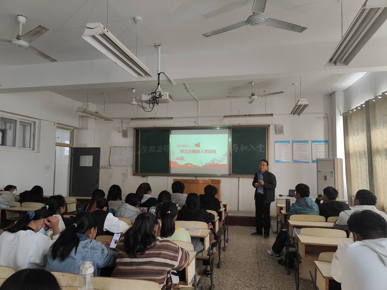 赵亮为2022级新生进行了思想引领教育,分别从“入党启蒙教育”、“大学的意义所在”、“大学读什么、怎么做一名优秀的大学生”以及“考研”等方面内容进行解读。赵亮指出同学们在校期间应合理规划大学生活,学好专业知识,不虚度光阴,在努力学习锻炼能力的同时,也要不断与社会接轨,与时代同步,增强大学生的社会责任感,希望所有同学做一个自觉自省,自律自强的大学生。