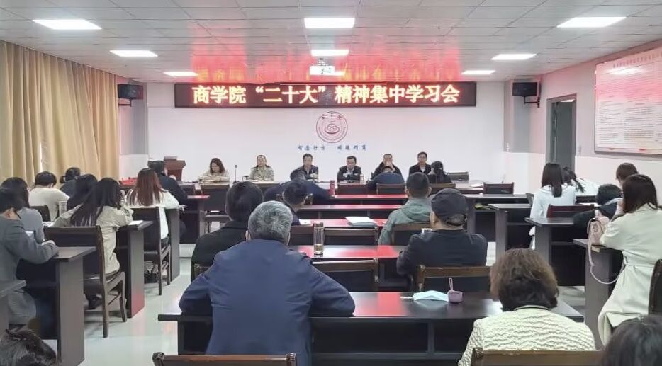 11月2日下午,商学院在实训楼B5173会议室举办党的二十大精神集中学习会。各党委委员、全体教职工参加了学习,会议由党委书记肖良主持。
