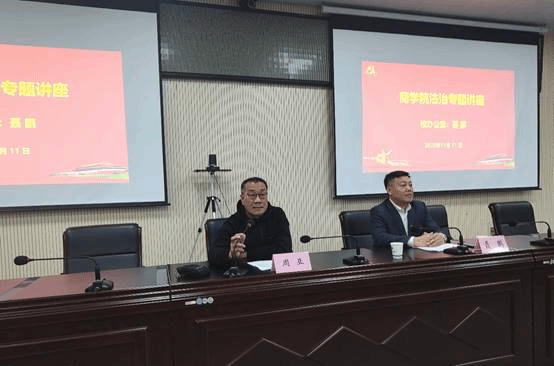 为更好地学习宣传贯彻党的二十大会议精神,进一步增强商学院广大青年学生法治意识与法治思维,丰富法律知识,提高尊法守法用法自觉性,争做尊法、学法、守法、用法的新时代大学生,11月11日下午,商学院在逸夫楼第二会议室举办“商学院法治专题讲座”。办公室法治科科长聂鹏为商学院2022级全体学生及商学院全体法治宣传员作了题为《争做新时代尊法、学法、守法、用法的大学生》的专题讲座。商学院党委副书记周亚主持讲座。