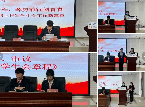 学生会工作人员程宇代表学院第三届学生会委员会作题为《砥砺奋进新征程,踔厉前行创青春,“两个建成”道路上书写学生会工作新篇章》的工作报告,总结了一年来学生会在深化思想引领、营造学习氛围、维护学生权益、服务同学成长等方面做出的突出贡献和成果,也反思学生会存在的问题与不足,希望在未来一年里积极改进,对新一届学生会组织的工作方向做出展望与规划。大会对报告进行了审议。