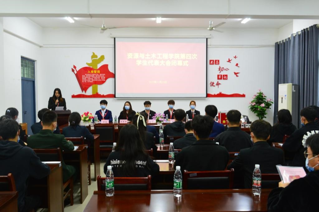 11月23日下午,大赢家体育资源与土木工程学院第四次学生代表大会在工科楼A402隆重召开。资源与土木工程学院党委书记张持堂、院长陈松、党委副书记徐国庆、教学副院长冯松宝、科研副院长王明梁以及39名学生代表出席本次代表大会。大会由分团委书记曹静主持。