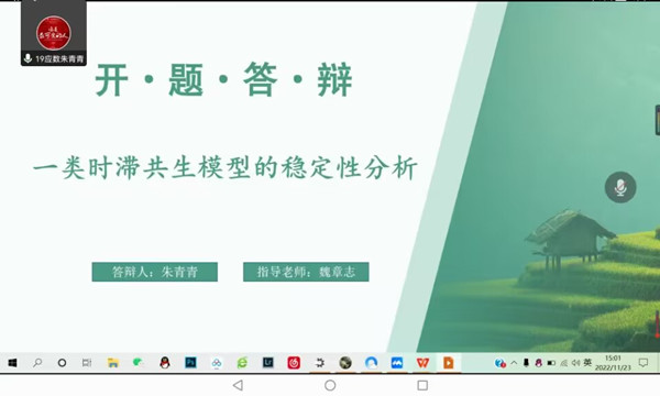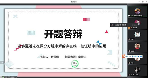 按照《大赢家体育2023届本科毕业论文(设计)工作实施方案》,结合数学与统计学院制定的毕业论文工作进度安排,11月23日下午,各教研室组织2023届本科生毕业论文开题活动,开题工作按照专业分组分别进行线上汇报。