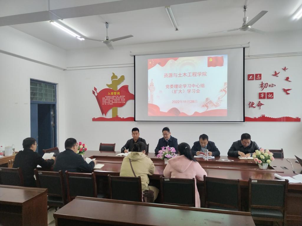 11月28日下午,资源与土木工程学院党委在会议室召开理论学习中心组(扩大)学习会,学院党委理论学习中心组成员、师生党支部书记及部分党外人士参加会议。学院党委书记张持堂主持会议。