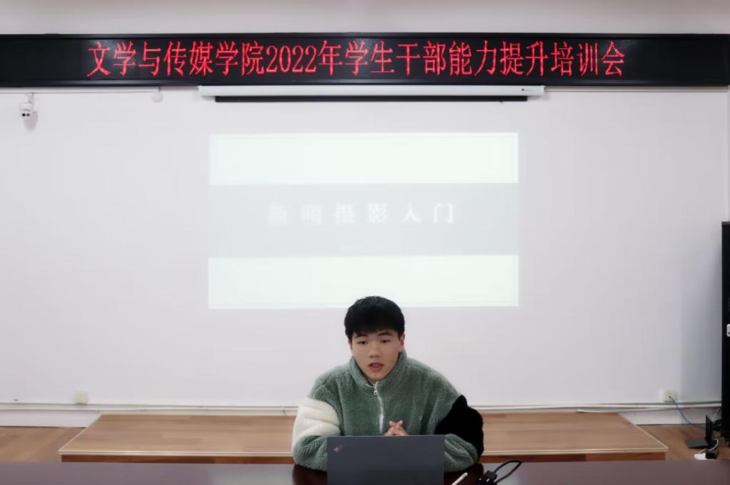 12月2日下午,文学与传媒学院在A303召开了学生干部能力提升培训会。学生会、班级主要干部参加此次培训会。文传学院党委书记杨文艺、2020新闻班刘松凯和汪文锐分别从如何去写工作报告,如何把握好新闻摄影角度,如何做好平台创作和运营工作三个方面作培训报告,抓住学科要领,分析就业形势,对学生干部应该具备的能力提出了要求。