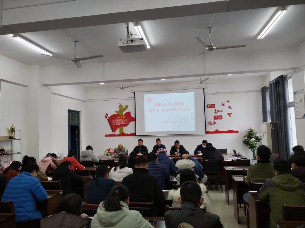 11月30日下午,资源与土木工程学院在工A402会议室召开教职工理论学习会,深入学习党的二十大精神和《党章》(修订版)。党委书记张持堂主持会议,全体教职工参加学习。