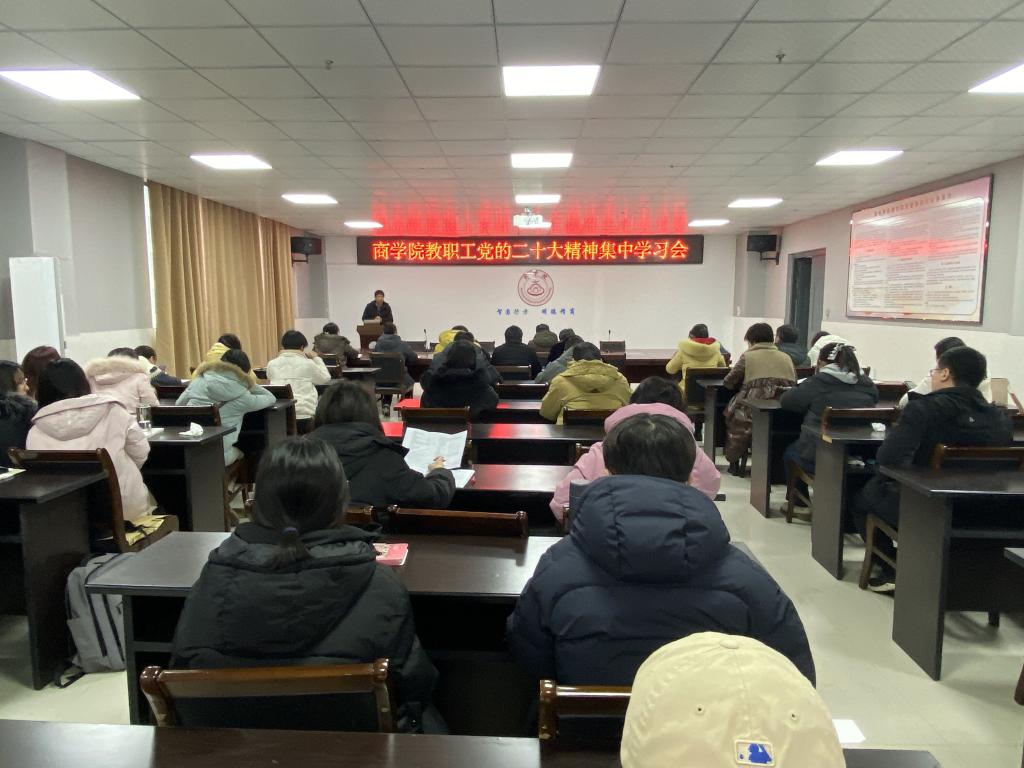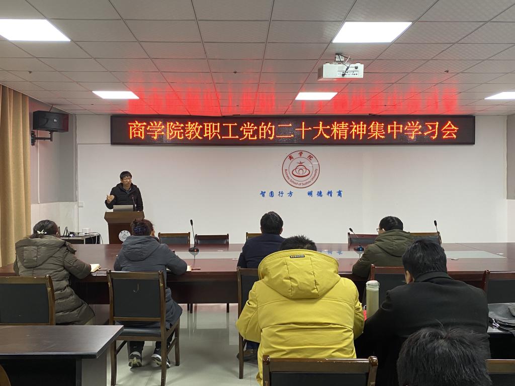 2月11日上午,商学院在实训楼B517会议室召开教职工党的二十大精神集中学习会。会议由商学院党委书记肖良主持,全体教职工参加了集中学习。