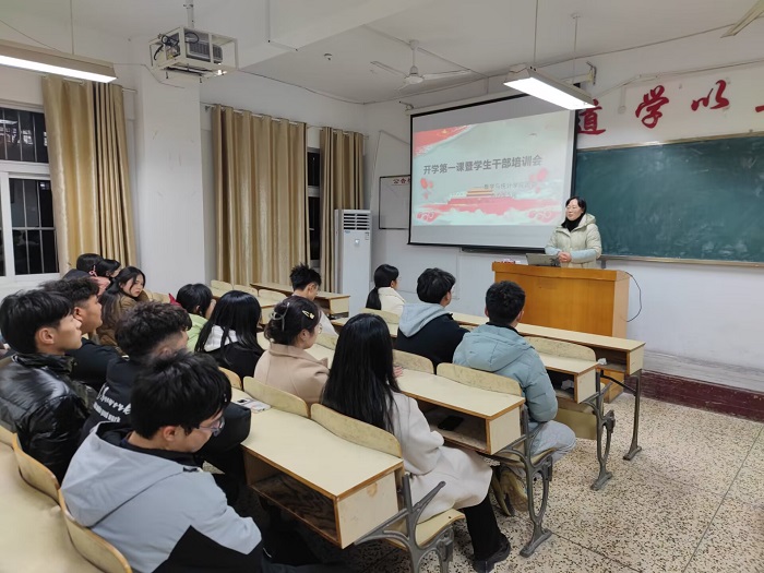 为加强学生干部队伍建设,提高学生干部思想道德素质,树立正确的世界观、人生观、价值观,数学与统计学院分团委于2月17日开展了新学期第一次学生干部培训会,学生会全体成员和各班级主要班干部参加了本次培训。