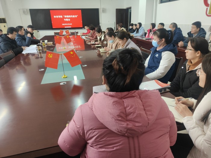 为加强教师思想政治素质和职业道德观念,提升师德师风水平,2月24日,体育学院党委组织召开师德师风专题学习会,党委书记李高主持,全体教师参加。