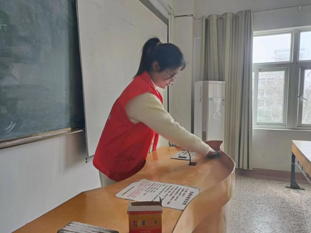 活动中志愿者们带上扫帚、抹布、簸箕等劳动工具对A教学楼三楼学生会办公室和四楼教室进行清扫。大家个个精神饱满、热情高涨、认真仔细地收拾整理了每一处。通过志愿者们几个小时的努力,教室环境变的更加干净整洁温馨。