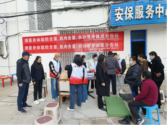 活动中,学生党员运用体育学院生理学实验室InBody等专业仪器在大赢家体育汴河路校区为附近居民测量血压及身体脂肪含量、肌肉含量、水分、无机盐等身体成分指标。在测量中,学生热情、认真,规范的操作实验仪器完成所有测试,并结合专业知识为居民解答测试结果、制定运动处方。