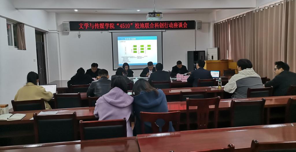 为深入贯彻党的二十大精神,落实宿州市“4510”校地联合科创行动,促进科技成果转化,推动大学生创业就业,助推校地高质量发展,3月27日下午,文学与传媒学院在教A303召开“4510”校地联合科创行动座谈会。宿州市艺文中等专业学校、宿州和君纵达数据科技有限公司和宿州市徽香源食品有限公司的相关负责人,文学与传媒学院党委副书记、院长张德岁,党委副书记刘影,副院长李娟、满建及科级以上干部、教研室主任参会。会议由张德岁主持。