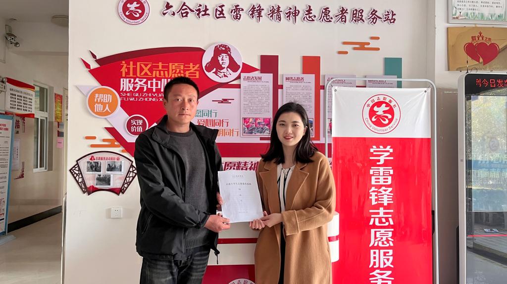 抵达社区后,六合社区负责人许书记、徐主任等工作人员对商学院志愿者团队的到来表示热烈的欢迎,并向志愿者们介绍了六合社区的基本情况。随后,曹超超与社区负责人就共建大学生志愿服务基地事宜进行了深入的沟通和友好的协商,并与六合社区签订了《共建大学生志愿服务基地协议书》,促进志愿服务活动阵地化和常态化开展。