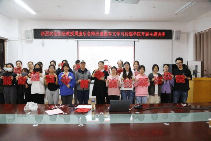 4月11日下午,我院客座教授周康乐在教学楼A303开展了“剪纸艺术欣赏”主题讲座,学院教学副院长李娟、教学秘书徐文斌及文化产业管理专业师生参加了讲座。