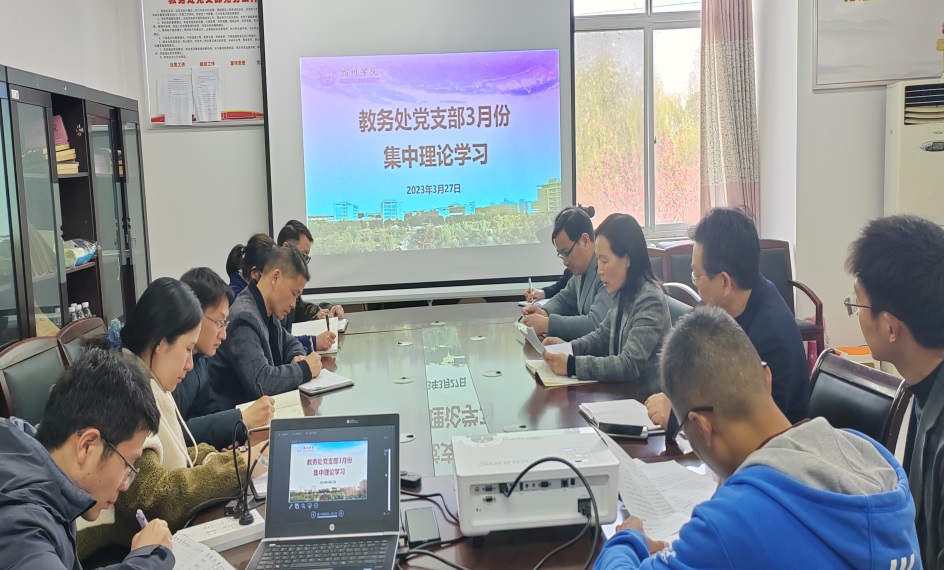 3月27日,教务处党支部在逸夫楼A202开展3月份集中理论学习。党支部书记王红艳主持会议,教务处全体人员参会。