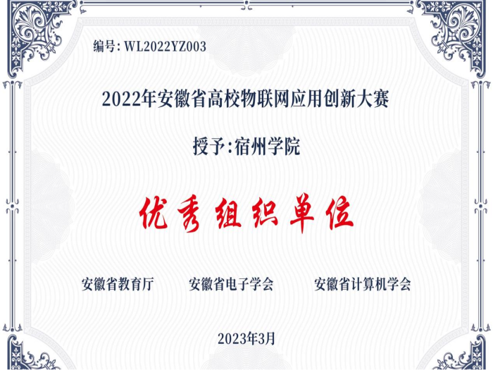 2022年安徽省高校物联网应用创新大赛(线上赛)于2022年11月13日在安徽科技学院落下帷幕。我院代表队共获得一等奖1项、二等奖2项、三等奖6项,学校获“优秀组织奖”。