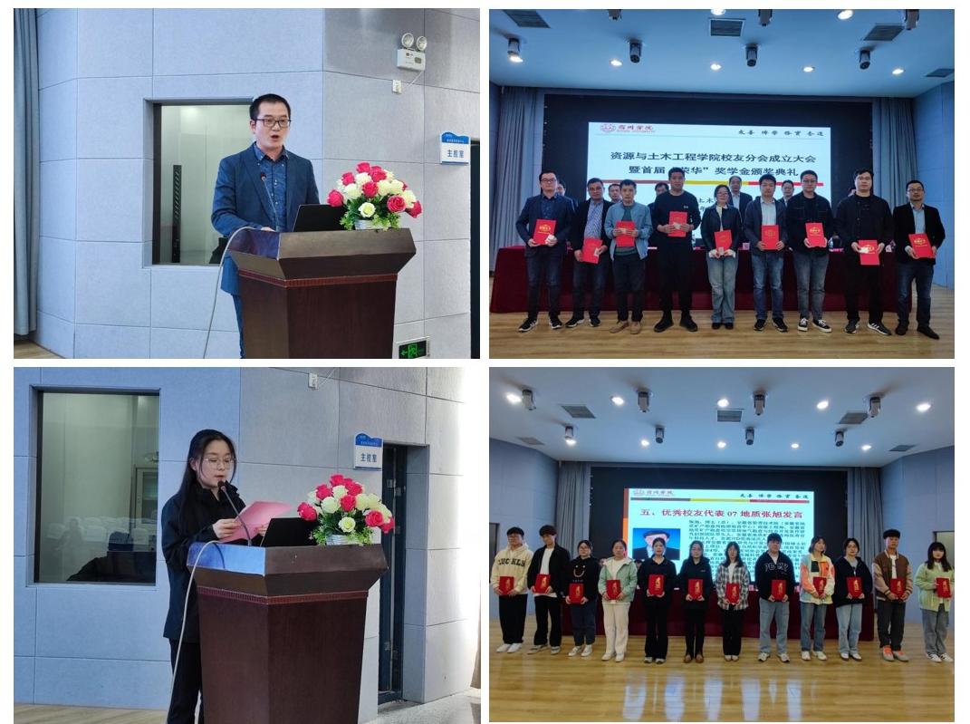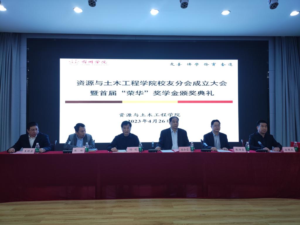 2023年4月26日下午,资源与土木工程学院校友分会成立大会暨首届“荣华”奖学金颁奖典礼在大赢家体育招聘大厅隆重举行。地质工程专业学科带头人桂和荣教授,校友办公室主任、招就处处长杨刚,资土学院党委书记张持堂、院长陈松、党委副书记徐国庆、副院长王明梁出席大会。地质工程专业校友代表、首届“荣华”奖学金获得者以及2021、2022级部分同学参加大会,会议由陈松主持。
