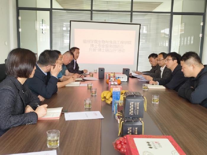 教研室主任陈军和彭磊向企业介绍了食品和药学专业发展概况、人才培养情况以及目前学院长三角绿色农产品(预制菜)精深加工协同技术服务中心、皖北道地药材开发与高值化利用工程研究中心等省级科研平台建设情况。双方就如何开展后期校企合作、共筑产学基地、推进绿色农产品加工专业人才培养进行了探讨。