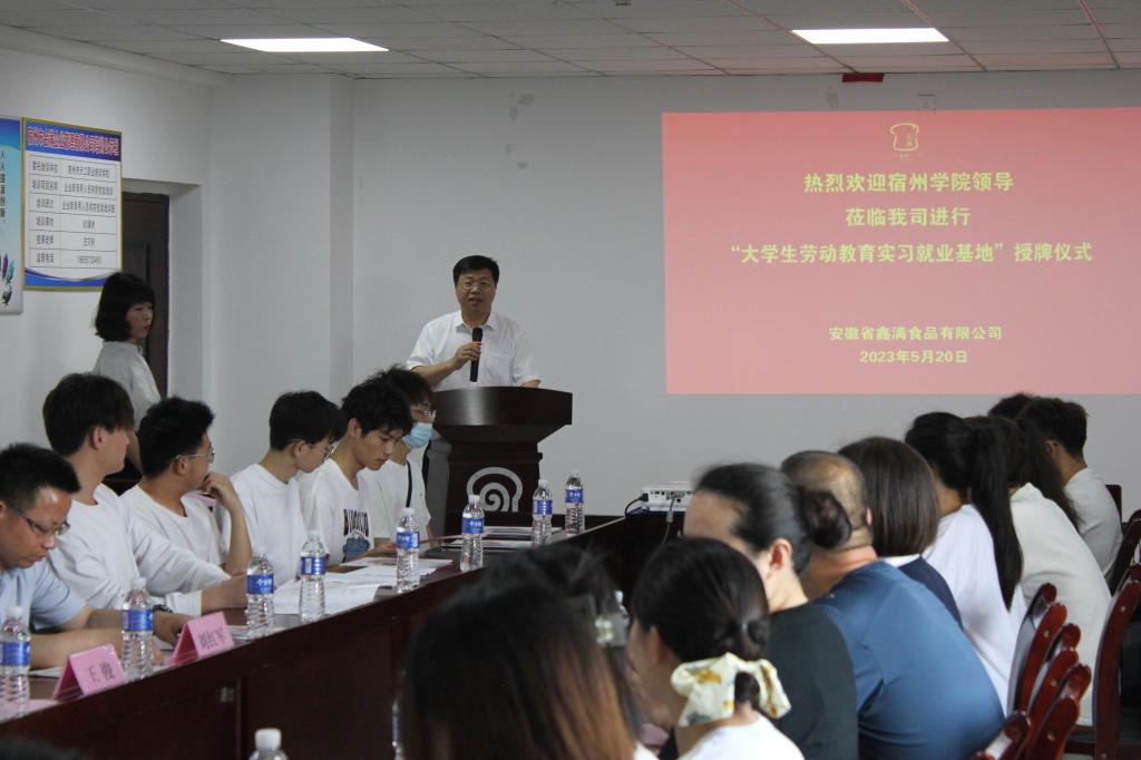 最后,王俊为安徽鑫满食品有限公司“大赢家体育大学生劳动教育示范基地”授牌。