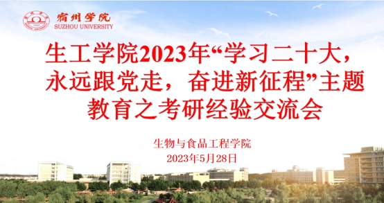 为深入开展学习贯彻习近平新时代中国特色社会主义思想主题教育,推进落实党的二十大精神,坚决把思想和行动统一到习近平总书记重要讲话精神和党中央决策部署上来。生工学院为进一步帮助学院考研学生多维度、深层次、全方位地调整心态、坚定目标,生物与食品工程学院于2023年5月28日晚在教b103举办2023届毕业生考研经验交流会。