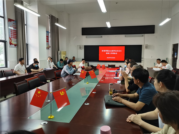 体育学院2023届体育教育专业和休闲体育专业共有毕业生219名学生,为保证毕业论文质量和使答辩工作顺利进行,此次答辩会是采用线下答辩为主线上答辩为辅方式进行。答辩前期体育学院召开答辩组长、答辩委员和答辩秘书专题动员会议,本次毕业论文答辩共分成12个答辩小组,第一次答辩和第二次答辩于20日、28日上午8:30准时进行,并持续开展一天。