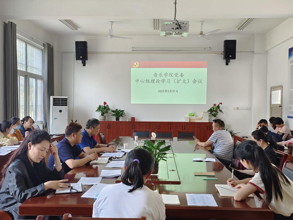 2023年5月31日,音乐学院党委在会议室召开党委中心组(扩大)理论学习会,党委书记徐强,音乐学院党委副书记、院长王善虎,党委副书记、纪委书记李小娜,副院长钦媛以及全体教职工参加了会议。本次会议由徐强主持。