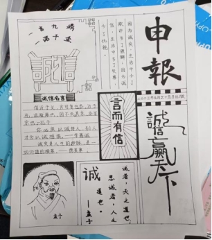 本次比赛,参赛形式为制作手抄报的方式,选手们围绕“诚信进校园”主题进行创作,手抄报内容积极向上,内容丰富且生动,富有创意,情感真挚,主题凸显清晰。“诚信为人之本”“伟大人格的素质,重要的是一个诚字”,这些简洁而富有哲理的名言让人受益匪浅。