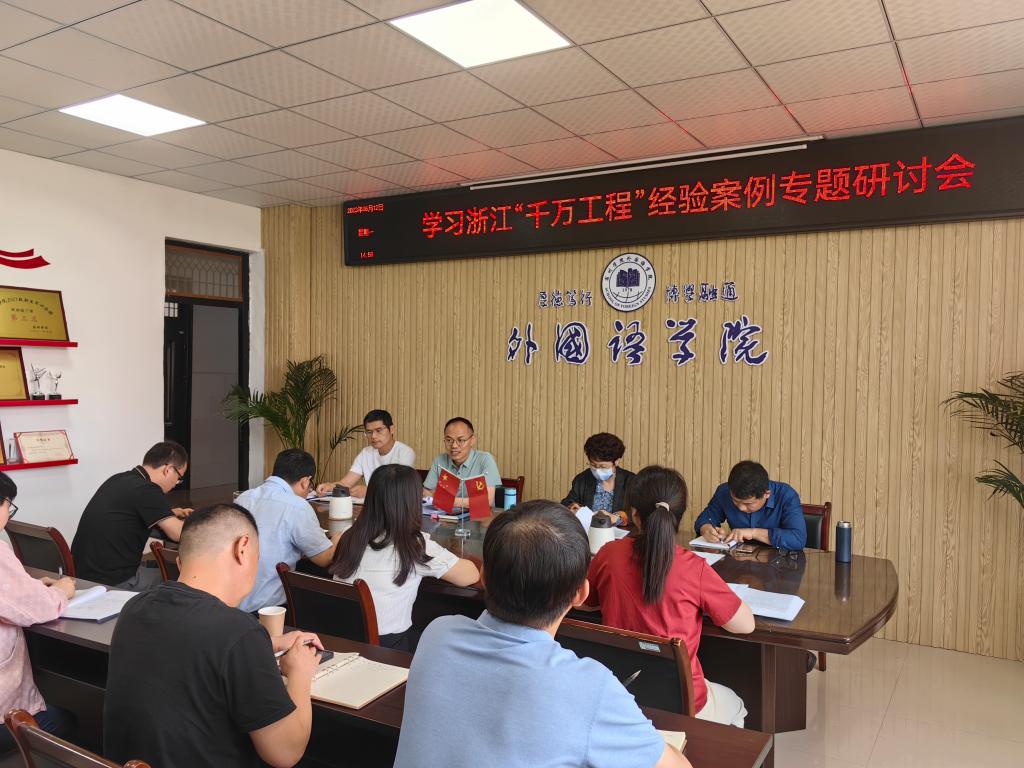 学院领导班子成员围绕“千万工程”经验案例学习,结合主题教育,立足各自岗位,进行了专题研讨。下一步,外国语学院党委以及各党支部将把学习“千万工程”经验案例纳入党员教育培训的案例教学,引导党员掌握蕴含其中的战略思维、科学理念、系统方法和为民情怀,以优良作风和扎实工作推进学院高质量发展。