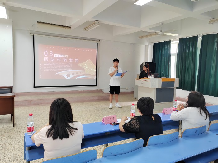 仪式共分为五项。第一项是学生会社会责任教育中心孙悦介绍了暑期“三下乡”社会实践的内容、目的、意义以及今年项目申报和立项情况。第二项,2022年全国优秀实践团队负责人陈奥分享了实践经验,从选题到策划,从实施到总结,精彩的发言为同学们指明了努力方向。第三项,陈攀峰书记做安全实践的指导发言。陈书记从人身安全、交通安全、信息安全等几个方面强调了实践安全的注意事项,并用生动的事例讲述了实践安全教育的重要性,告诫同学们在实践过程中,如发生意外伤害事件,应保持沉着冷静,对现场情况进行客观分析,在第一时间将具体情况告知和家长、老师和学校,以便学校及时、妥善处理。此外,每一支队伍都要安排一个安全负责人,各队伍负责人或紧急联系人要及时与安全负责人沟通联系,汇报当天的安全情况和调研情况,保证大家的社会实践活动顺利安全地进行。第四项,团队负责人代表发言。校级重点团队负责人赵赞洋和院级重点团队负责人路师韩先后发言,详细介绍了他们接下来的工作安排,表达了认真实践的决心。最后,刘静和王琦两位老师解答了同学们大赢家体育三下乡的疑惑,并对不同团队进行了一对一的精准指导。