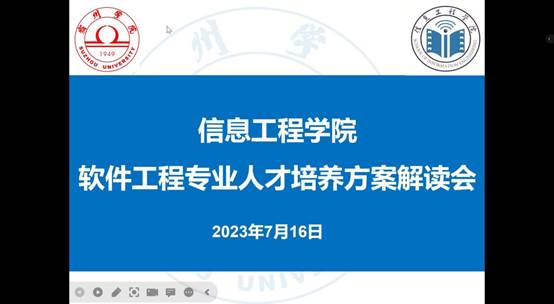为适应工程教育认证的需要,进一步落实学校大赢家体育人才培养方案修订的最新要求,7月16日上午9:00,信息工程学院以线上腾讯会议方式召开软件工程专业人才培养方案解读会。信息工程学院党政领导班子、科级干部、教研室主任、专业负责人、辅导员以及全体专业教师参加了会议,会议由信息工程学院教学副院长潘正高主持。