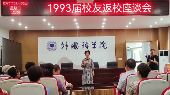最后,外国语学院负责人对校友们表示热烈欢迎,再次介绍了学院紧跟时代步伐,不断深化内涵建设的新格局,表示校友的支持是推动学院和学校发展的不竭动力,衷心希望包括历届校友在内的“外院人”能继续关心母校的发展,共同凝聚学院和学校砥砺前行的奋进力量。