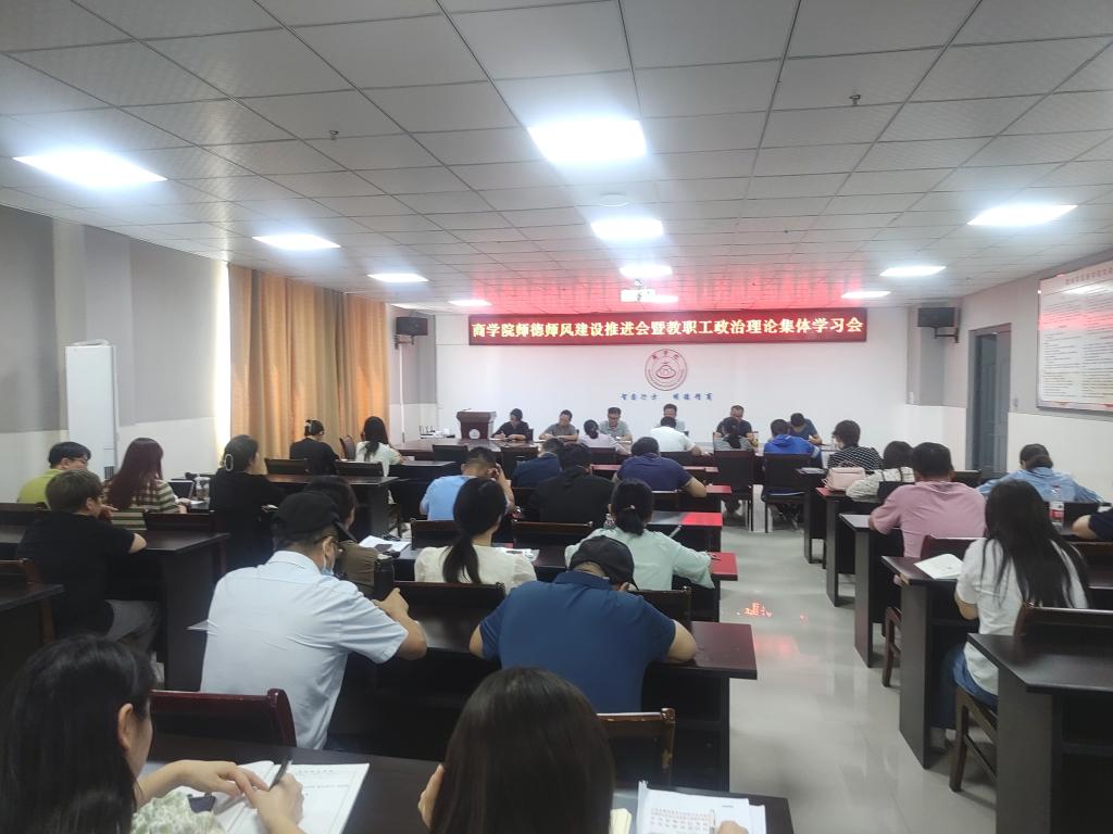9月1日上午,商学院在实训楼B517会议室召开师德师风建设推进会暨教职工政治理论集体学习会。全体教职工参加会议,会议由党委书记肖良主持。
