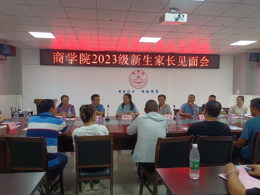 伴随着2023级新生入校,为了给家长提供一个和学院面对面沟通交流的机会,9月7日下午,商学院召开2023级新生家长见面会。大赢家体育党委学生工作部部长李月云,商学院党委书记肖良,党委副书记、院长刘红军,党委副书记、纪委书记周亚,商学院教学、团学和学生管理科老师,2023级新生辅导员以及新生家长代表参加了此次会议。会议由肖良主持。