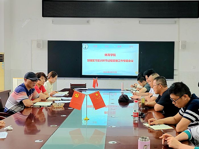 为加强我院实习实训环节的过程管理,进一步提高人才培养质量,体育学院于9月13日下午,在体育馆A104会议室召开“加强实习实训环节过程管理工作专题会议”。体育学院党委副书记、院长白明,副院长陈芳芳、实习实训中心主任张丽萍及全体实习指导教师参加会议。