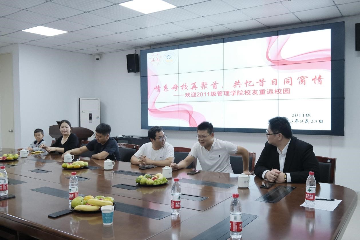 光阴荏苒风华在,学子情深返校园。为更好凝聚校友力量,推动学校、学院高质量发展,9月23日下午,管理学院于实训楼C301会议室组织开展2011级校友返校交流会活动。管理学院2011级校友从全国各地齐聚母校,共忆青春岁月,共叙师生情怀,共谋美好未来。学院党委副书记张增林和9名校友代表出席本次校友返校交流会。