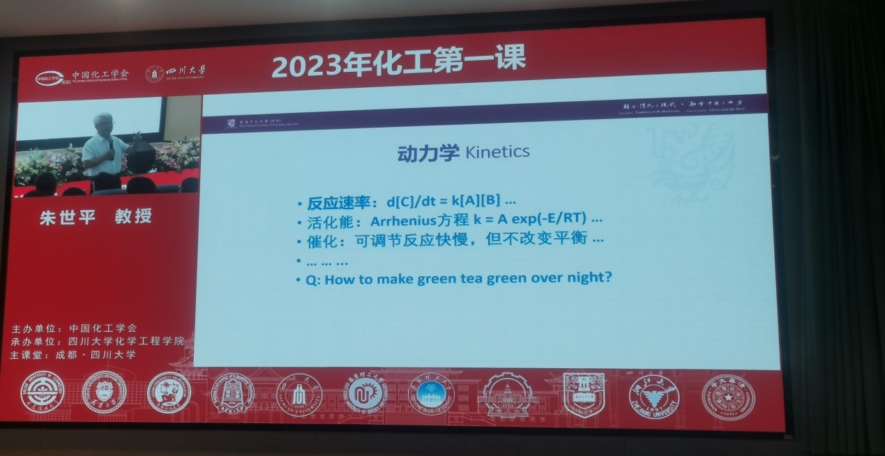 “化工第一课”主讲人朱世平教授是香港中文大学(深圳)副校长,加拿大皇家科学院、加拿大工程院、发展中国家科学院院士,长期从事化工、高分子领域的教育与科研工作。本次活动以朱世平教授亲自谱写的一首优美的《化工之歌》拉开序幕,《化工之歌》以院士的严谨与青年般的朝气,为化工新生展示了一幅化工科研的美好图景。朱世平从“化工学什么、化工干什么”等方面展开,以鞭辟入里的见解、通俗精炼的讲授为我们展现了独特的“化工之美”,传达化工人艰苦卓绝、追求创新的精神,坚定化工人造福社会的使命。