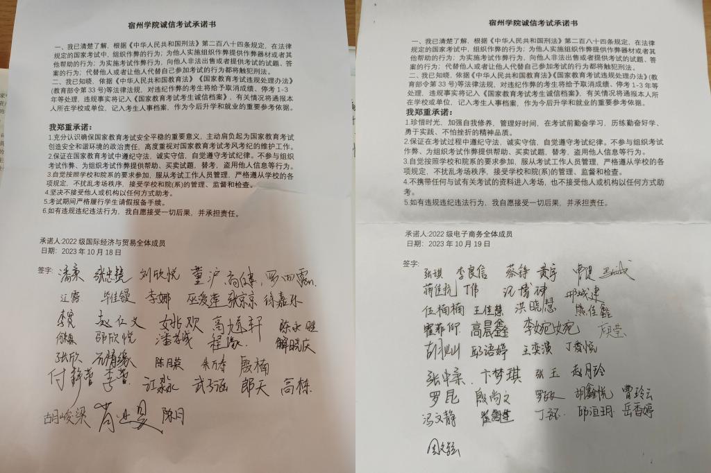 活动期间,各班级发起“诚信考试倡议签名”活动,向广大同学提出“诚信考试 杜绝作弊”的倡议,让舞弊远离校园,让诚信常驻心中。