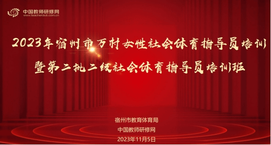 为持续加强校地合作,壮大宿州市社会体育指导员队伍建设,充分发挥社会体育指导员在全民健身活动中的骨干作用。11月5日上午,由宿州市教育体育局主办,中国教师研修网承办的“2023年宿州市万村女性社会体育指导员培训暨第二批二级社会体育指导员培训班”在埇桥区现代农业产业园开班,来自各县区的三级社会体育指导员100余人参加线下专题培训。体育学院党委副书记、院长,国家级社会体育指导员白明,体育学院实习实训中心主任、安徽省一级社会体育指导员张丽萍担任了此次培训活动的主讲老师。