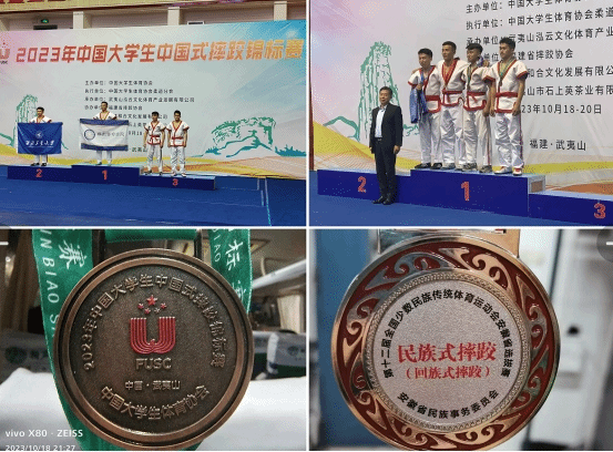 巩浩天从小学习中国式摔跤这项传统体育运动,作为非体育专业学生,在赛前利用业余时间积极训练备赛。巩浩天在决赛中沉着冷静,充分发挥个人技术优势和扎实的基本功,最终荣获该组的季军,展现了管院学子昂扬的精神风貌和高超的专业水平。