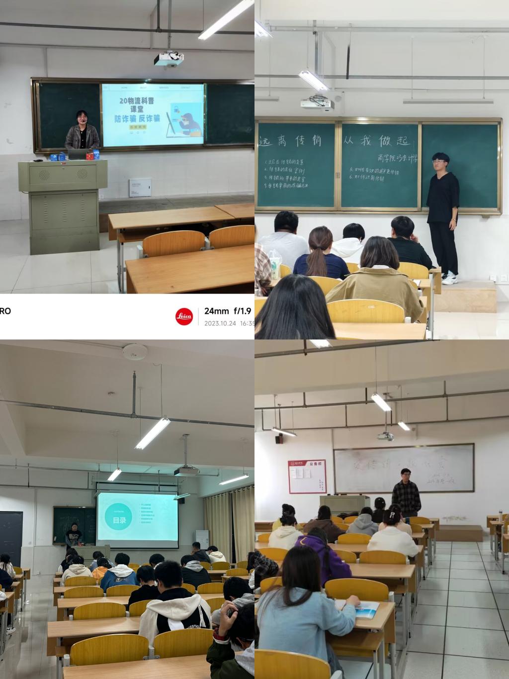 班会由各班辅导员主持,首先从传销的三大特点介入,介绍什么是传销,如收取入门费、发展下线、层级返利等几个方面可以判断可能是传销组织;另就传销类别也分别向同学们进行说明,分别是以暴力监控为主和以精神洗脑为主;结合目前大四学生正是实习就业的高峰期,对大家可能面临的传销陷阱和同学们进行提醒。最后,辅导员向同学们介绍了几条预防及应对传销骗局的措施,并警示同学们不要轻信他人,要懂得保护自己的生命和财产安全,增强防范意识。