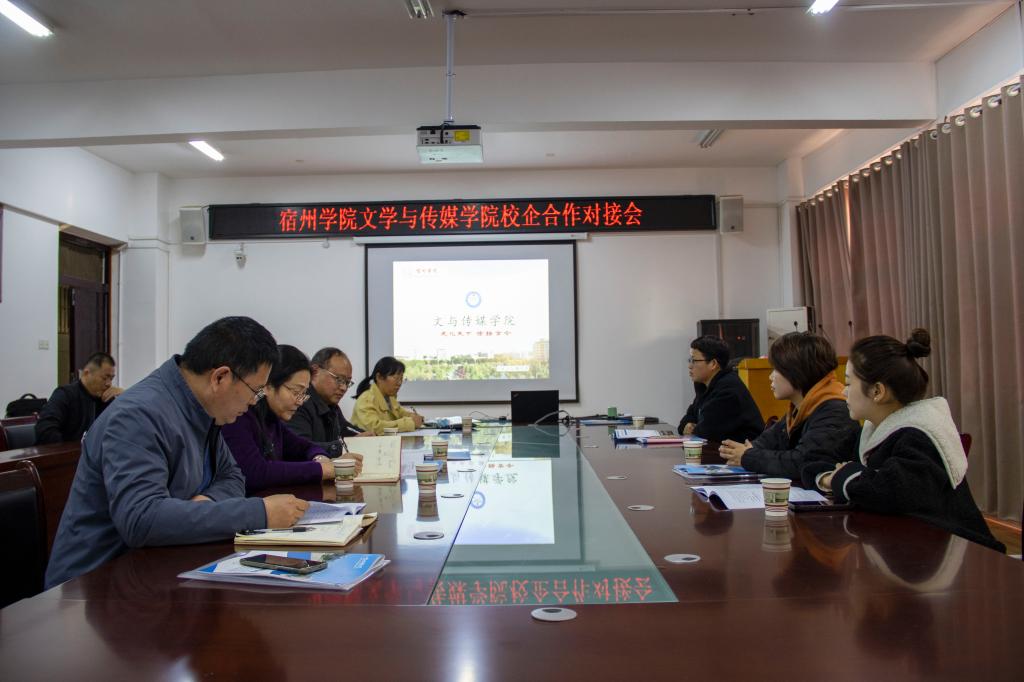 为进一步推动“4510”校地联合科创行动,加强供需对接,落实稳就业、保就业的决策部署,11月20日下午,文学与传媒学院在教学楼A303会议室召开“访企拓岗”校企合作对接会暨实习就业基地签约仪式,宿州居里传媒发展有限公司、砀山县才华小学、砀山县秋实学校三家单位来学院洽谈合作。党委书记王金岭,党委副书记、院长李月云,党委副书记、纪委书记刘影,副院长满建及毕业班辅导员参会,会议由党委书记王金岭主持。